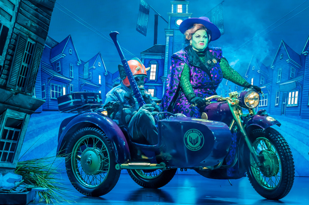 The design of the play was futuristic in style, taking its inspiration from steam-punk. The witches (including Charlotte Jaconelli as the Wicked Witch of the West) rode around on motorbikes rather than brooms, and the yellow brick rode was made out of yellow neon lights.