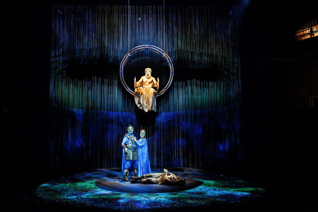 The most bizarre part of the play (it comes out of nowhere and doesn’t appear to add much to the story) sees the God Jupiter appear before Posthumus during the battle. The scene was accompanied by sudden flashes of light, with the God descending from the ceiling on a swing. It was an incredibly striking image, but felt a little out of place with the rest of the play. What was Shakespeare thinking?