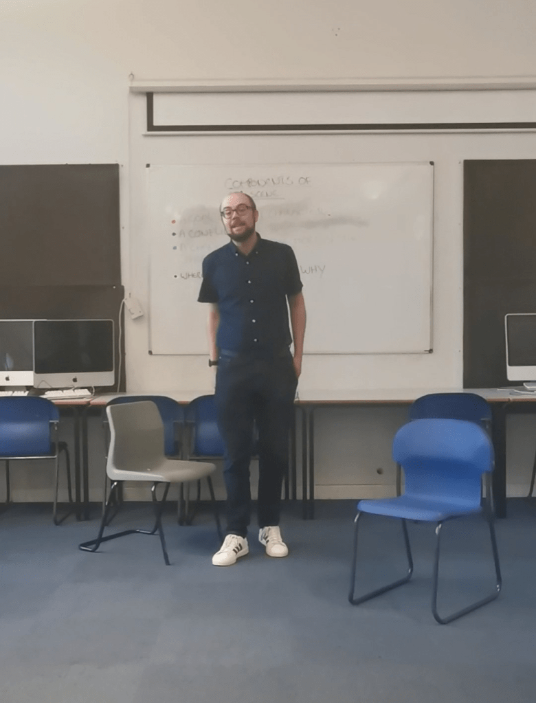 The first of these was “Joe and Juliet”, by Chris Hendry. This play told the story of two teenagers (the titular Joe – played by me – and Juliet – played by Ama) as they embarked on their first relationship. Alongside this story is the tale of two ghosts, Herbert (played by Paul) and Badass (played by John). They both haunt benches in a graveyard that are dedicated to them. The two stories overlap when Joe and Juliet decide to spend more and more time on Herbert’s bench in order to avoid their parents.