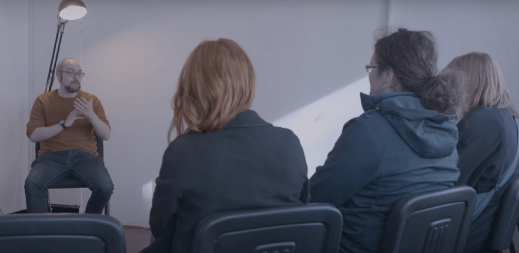 Penny’s character had passed a homeless person in the street that she thought was an old friend, and she asked the audience for advice about whether she should get involved or not. Pete’s character was a refugee who had left his family behind when he had travelled to the UK many years before. Now he was about to come face to face with his daughter for the first time in a long time – but she didn’t know who he was. Anne’s character had recently lost her mother, who she had cared for for many years. She was secretly excited at the prospect of having a more exciting life now that she didn’t have her mother to look after. Yasmin’s character was receiving secret love notes from an admirer, but was unaware they were from her closest friend. Gavin’s character was trying to reconnect with his estranged children, using the Teenage Mutant Ninja Turtles as a clever metaphor to describe his relationships. And John’s character was a writer, listening to other people’s stories and writing them down for others to enjoy or learn from.