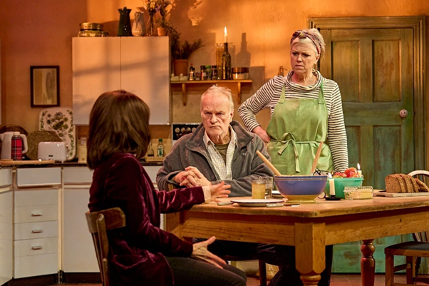 Rose pays a visit to married couple Hazel (Caroline Harker) and Robin (Clive Mantle), and all three spend a great deal of time reminiscing about their past lives in the power plant. After the dramatic opening, the play massively puts on the brakes, to the point where I was left wondering whether there was any storyline other than anecdotes and tongue-in-cheek comments about retirement (which were all very humorous but seemed at odds with the initial set up). About an hour in, the play finally moves up a gear as Rose makes an announcement that will change Hazel and Robin’s lives forever, and what follows is an intense dispute that is riveting to watch and superbly acted by Dexter, Harker and Mantle.