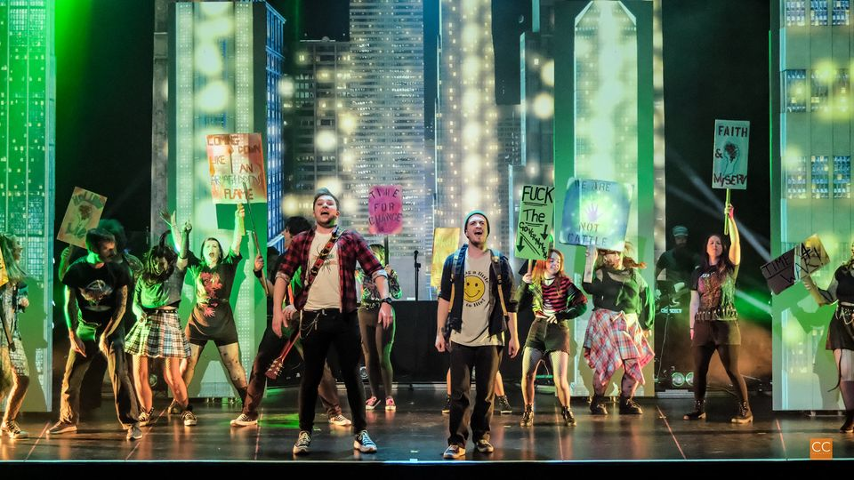 To mark the 20th anniversary of Green Day’s concept album “American Idiot”, Heanor Musical Theatre Company bring the musical adaptation to the Mansfield Palace Theatre. The show expands on the story of the album, complete with a live band and adrenaline-pumping dance numbers. Squeezing 23 songs into a 90-minute show is no mean feat, but HMTC make this seem effortless, with each song swiftly merging into the next and moving the story along.