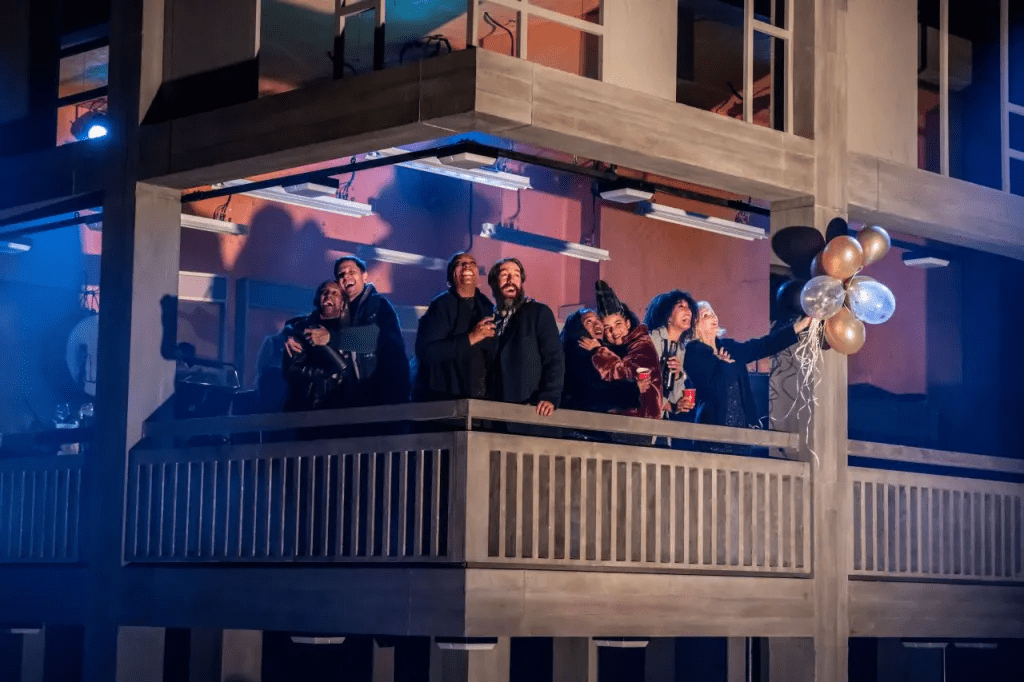 Set across 60 years in Sheffield’s Park Hill Estate, “Standing at the Sky’s Edge” tells the story of three families, each residing in the same flat in different decades. From the moment you enter the theatre, you are immersed in life at Park Hill – the foyer is full of concrete walkways, and the large stage houses several storeys of the iconic complex, with band members hiding in the windows.