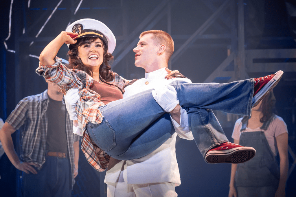 The show is interspersed with a mix of 80s pop and rock anthems, that bring additional energy and excitement to the performance. The opening number “In the Navy now” sets the gritty tone of the Naval camp, and introduces us to our main protagonists Zack Mayo (Luke Baker) and Sid Worley (Paul French), who both dream of piloting jets but have their heads turned by local factory workers Paula (Georgia Lennon) and Lynette (Sinead Long). Both Baker and French are well-suited to the roles, providing excellent vocals throughout, and it is a joy to see their friendship develop across the two-and-a-half-hour show.