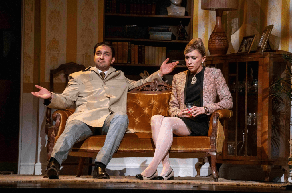 The set up is intriguing and the production, directed by Karen Henson, draws you in with likeable couple Howard (John Goodrum) and Joanna Mansfield (Hannah Blaikie), who find themselves at the centre of an intricate plot that continues to get more tangled as the story continues. Goodrum as Howard is particularly well-suited to the role – hardly ever leaving the stage during the two-hour runtime, the self-assured, charismatic book publisher is the perfect leading man to spin this convoluted tale, instantly getting the audience on-side even if the decisions he makes are not always the wisest or most ethical.