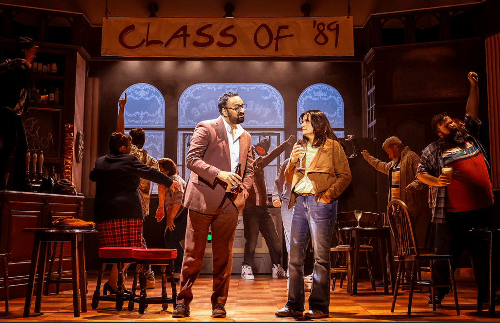 It begins in 2009, where siblings Gemma (Nina Wadia) and Frank (Shakil Hussain) attend a school reunion in The Palace pub. Lots of well-trodden but still amusing tropes are included here, with various characters commenting on how others have aged, and inevitably comparing themselves; some showing off, others getting jealous at their classmates’ accolades. Gemma is hoping that her childhood best friend April (Melissa Jacques) will turn up, as they have lost touch in their later years. Flashbacks to 1989 help to explain their friendship, with songs such as “Girls Just Want To Have Fun” adding some excitement to proceedings, as actresses Nikita Johal and Maia Hawkins take on the roles of the younger Gemma and April respectively.
