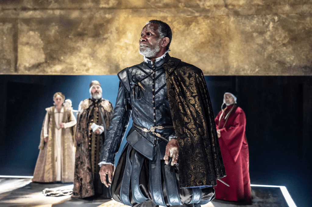 Tim Carroll’s production of “Othello” opens with the sound of a semantron, a wooden plank instrument that steadily calls the actors to the stage and encourages a gradual silence to fall across the audience. In fact, “steady” and “gradual” are two words well-fitted to this production, which strips the play to its bare bones, the stage devoid of furniture and the supporting music, to bring focus to the actors and Shakespeare’s words.