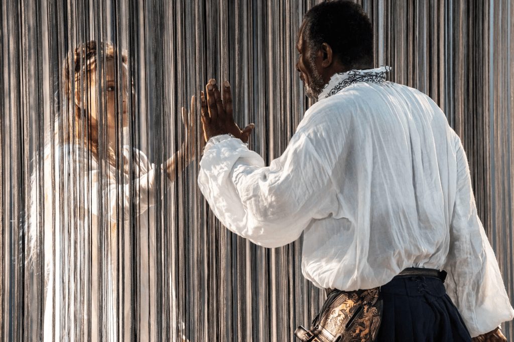 Speaking of additional frills, the final scenes introduce a tasselled curtain behind which Desdemona finds herself trapped as Othello approaches to murder his wife. The curtain presents a stark image, as Othello circles Desdemona as a lion stalking its prey, before becoming a metaphor for the afterlife, Desdemona welcoming Emilia and Othello shortly after to join her behind the curtain. I felt this was an effective way of delivering a more abstract look at life and death, without the need of any graphic fight choreography (Desdemona’s death is carried out in complete darkness), however the nature of the scene means that Rylance’s face is masked for her final scene, which definitely detracts from her superb performance.