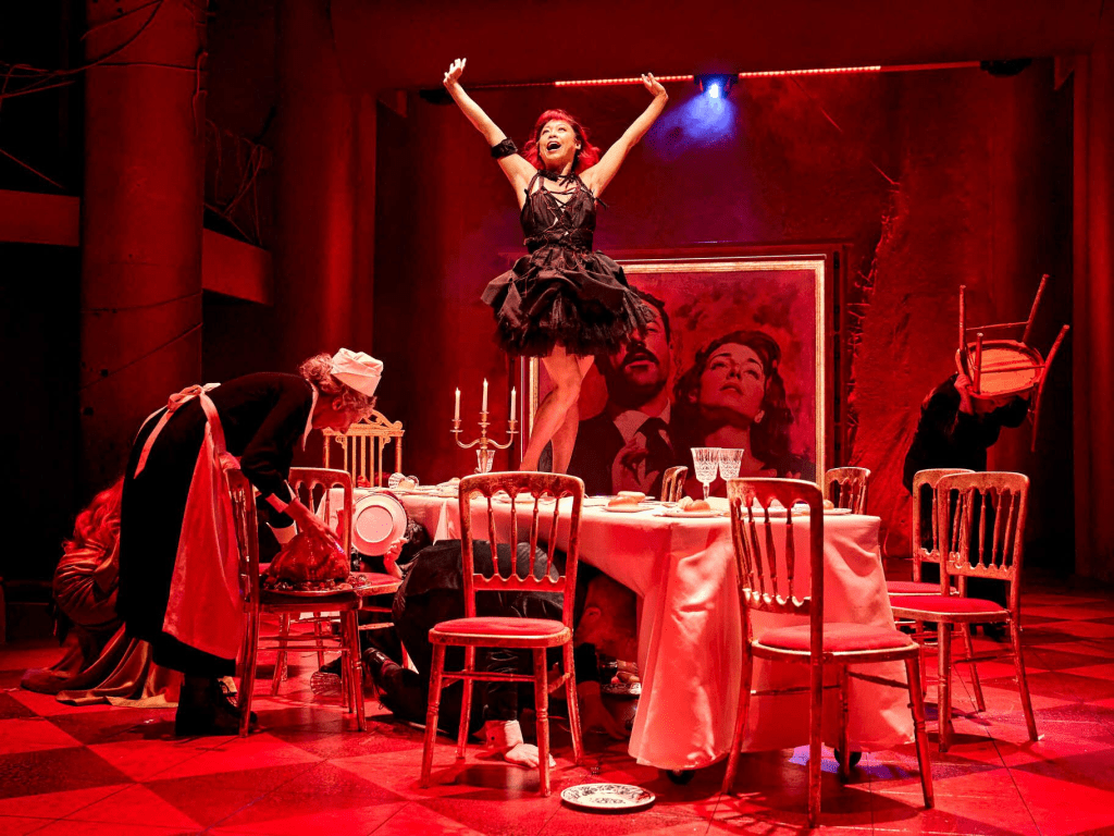 The first act culminates with an expertly choreographed number that sees Karen’s feet run wild at a dinner party, kicking glasses and plates and knives and forks at guests as the event very quickly goes awry. Kimberley Rampersad, as both director and choreographer, makes the stage feel busy whilst keeping the action focused on Karen and her story, without introducing too many other distractions. The dancing, which is present throughout, is expertly woven into the narrative, elevating the production rather than stalling it.
