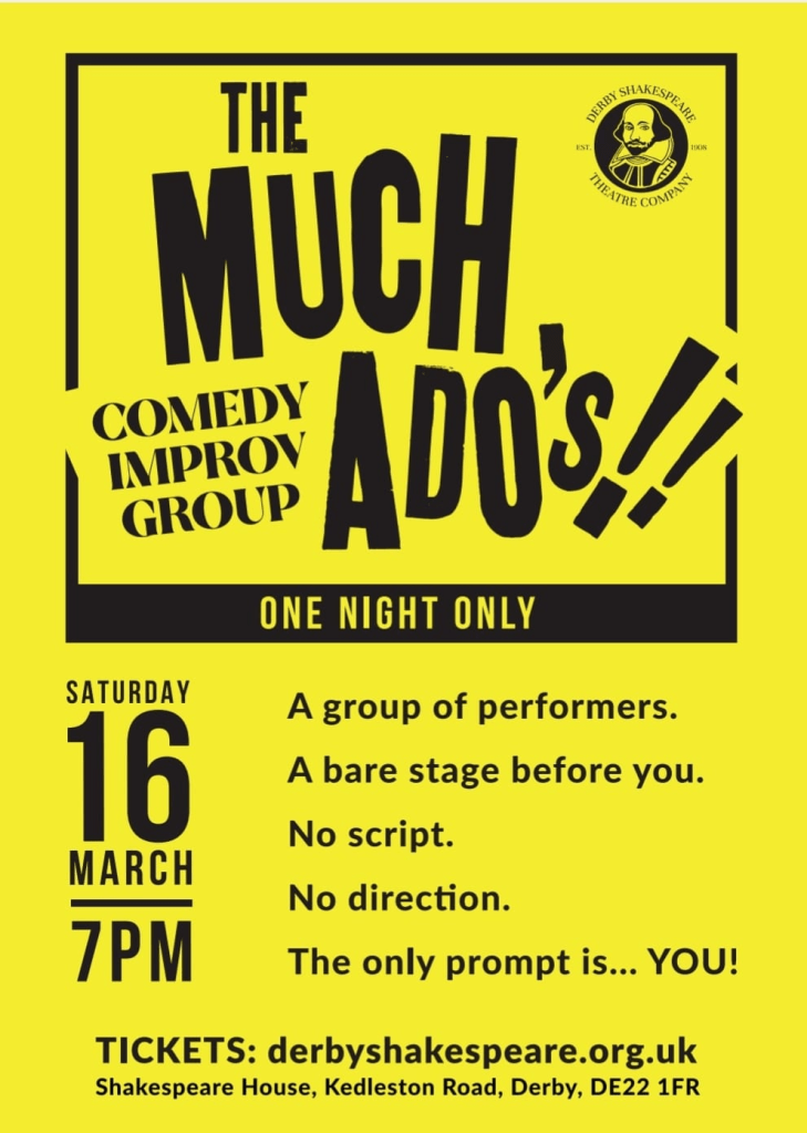 Prior to our end of term show, we were invited to perform as a supporting act for “The Much Ado’s”, a recently formed improv troupe in Derby, being taught by Adam Hodgson. This was an opportunity to try out our “book group” routine with an audience for the first time, and I was in charge of picking the suggestion from the audience. Looking back, I potentially made a mistake by taking the first suggestion (“Enola Gay – where is she now?”) given that the majority of us didn’t even realise that Enola Gay was a WWII bomber, but we were able to craft a show from it regardless, getting incredibly sidetracked by “The Very Hungry Caterpillar”.