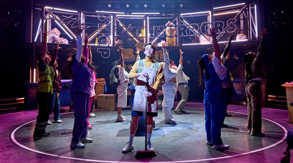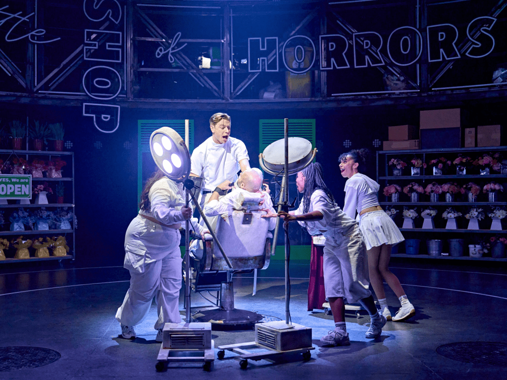 Sheffield Crucible’s revival of “Little Shop of Horrors” is a complete reimagining of the original 80s production, taking the usual story of a flower shop assistant and his murderous plant, and giving it a modern (and incredibly British) twist. The staging feels fresh and new, with TV screens helping to add new comedic elements whilst neon pinks and greens continually remind us that the evil Audrey II is getting ever closer to world domination.