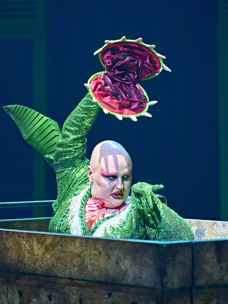 Further comedic moments occur during Mushnik and Son (reimagined as a Pasodoble, with Matus’s Mushnik brandishing a red cape) and It’s Just the Gas (with Scolding’s character overdosing on laughing gas), whilst more tender moments are found in the burgeoning relationship between Seymour and Audrey (Suddenly, Seymour).