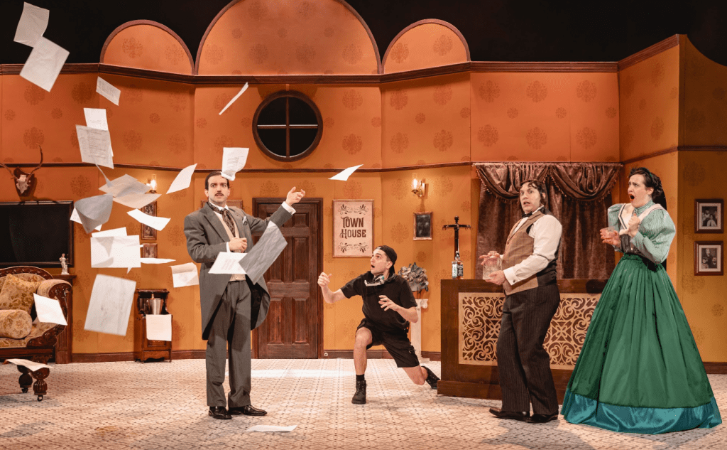 Amidst the chaos involving audience members, there are multiple jokes throughout that seemingly pay homage to The Play That Goes Wrong, with Guido Garcia Lueches forced to play the roles of both Chasuble and Miss Prism in the same scene, and Trynity Silk continually downing glasses of whiskey during a scene that keeps being repeated. These moments are undoubtedly funny, and draw laughs from the audience, but one can’t help feeling that this is nothing new, and that these jokes have been done before (and, in some cases, with more success). The slapstick comedy and physical theatre aspects of this production are seamlessly woven into the script, but feel unnecessary – where the play shines is in its audience interaction.