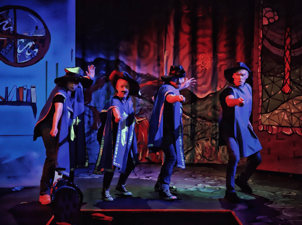 “All for one and one for all!” So goes the famous saying, and the Lace Market Theatre’s production of “The Three Musketeers”, adapted from Alexandre Dumas’ novel by John Nicholson, takes this phrase quite literally, beginning the performance by dishing out sweets to audience members in an attempt to immediately get us all on board. Thankfully, no such bribes are necessary, as the four actors throw themselves into this off-the-wall production with such enthusiasm that the audience can’t help but be dragged along for the ride.