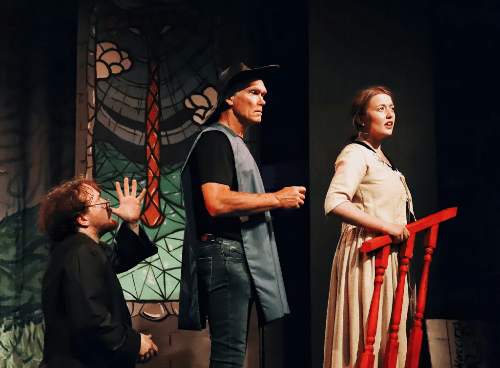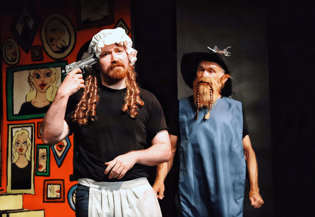 The play is completely insane, and no review could ever adequately describe some of the events that occur. Stage manager Emma Carlton tries to keep the cast on track as much as possible, providing live sound-effects throughout (with help from sound designer Darren Coxon), but this is a cast that is impossible to control – once they are off, there’s no stopping them. Just when you think things can’t get any more weird, Currie and Pluse dance round the stage dressed as butterflies, and the entire thing moves to another level of ‘out-there’. At just over two-and-a-half hours, this is a long play, but the cast make it seem effortless, their energy never dipping throughout. Over-the-top, exhausting, but a lot of fun.