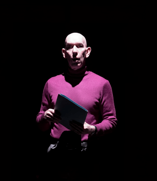 The play is entirely set in Bruhl’s study, and Conal Walsh’s set design helps to make the study feel daunting and claustrophobic – the bare rafters stretch over the actors heads, casting creepy shadows thanks to Michael Donoghue’s lighting. The back wall is filled with memorabilia from Bruhl’s previous plays, all different types of murder weapons. The old principle of Chekhov’s gun (that a gun seen onstage should be fired later in the play) has never been more appropriate – pistols, axes, handcuffs and even a crossbow, present on stage throughout, all play key roles at certain points of the script. Bruhl’s study is like a Cluedo game brought to life.