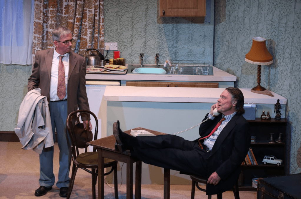 The first act provides an interesting set up. The most fascinating moments come when Stone is alone, when he is able to drop his act and sets about meticulously planning his revenge, following a list of carefully crafted instructions, and moving props around Conal Walsh’s superbly designed set. Gilbrook is alone on stage for a lengthy amount of time. He makes phone calls, he wipes away fingerprints, and he continuously takes paranoid peeks out of the window. It is a baffling scene, but intriguing nonetheless, and made all the more enticing by the knowledge that we will get answers to all of our questions later in the play.