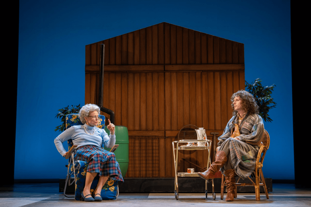 Despite all that, the final scene is a triumph, moving the story to the early 2000s, where Whitehouse is living in a care home, under the supervision of gay care worker Joseph. The transformation into an elderly woman is nothing short of mesmerising, as Peake’s sensible shoes are traded for slippers and she carefully lowers herself into a wheelchair, a slight tremble in her hands and a lop-sided grimace on her face. It is a beautiful scene, all perfectly backed by Simon and Garfunkel’s Bridge Over Troubled Water, which suddenly cuts out as Whitehouse launches into a tirade about the abominable new Channel 4 show Big Brother. But this time something is different. No one is listening to her. Joseph almost mocks her, wheeling her around the stage and feeding her cake. He holds the power now. In a flash, Whitehouse is reduced to a shadow of the past. It is not a total victory – Whitehouse never learns the error of her ways, never seeks forgiveness for the lives that she has ruined – but it feels like a victory nonetheless. It is, in it’s own way, uplifting, and a valuable message to end on, especially in today’s tumultuous climate, with figures of hatred such as Elon Musk and Tommy Robinson taking up so much of the media’s time.