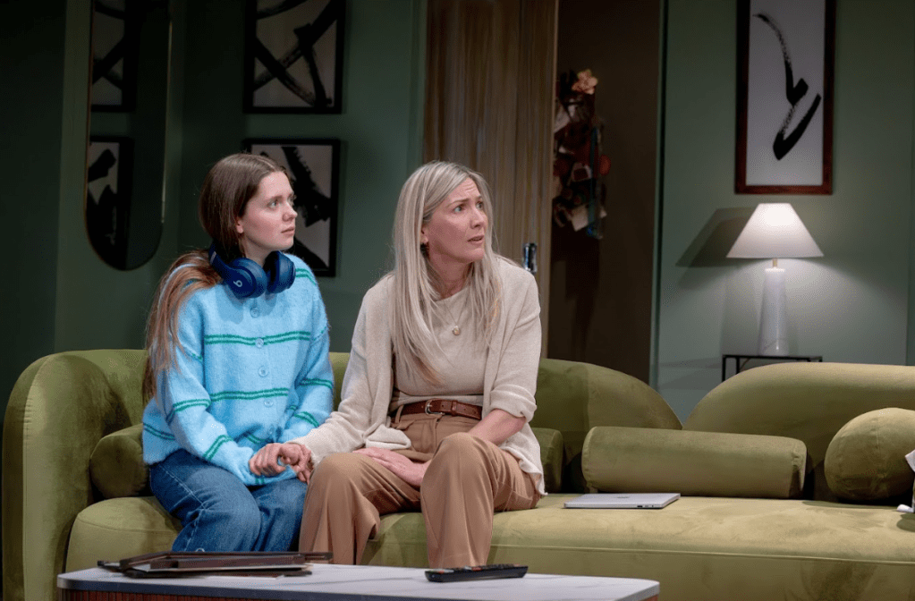 Morgan Large’s design feels modern and sleek, bringing to life a city-centre high-rise apartment that doesn’t quite match with the dialogue that suggests the flat is slowly falling to pieces – it all feels a little too shiny and new. Jason Taylor’s lighting and Max Pappenheim’s sound is designed to shock and unnerve the audience, sudden flashes and loud noises delivered with the simple intention of making the audience jump, which is reminiscent of “2:22 A Ghost Story” but less effective here. Scenes are broken up with sudden bursts of popular music (we are treated to snippets from artists such as Olivia Rodrigo, Radiohead and Lizzo) which feels a bit out of place, and creates long blackouts that don’t serve any purpose – the entire play takes place in Allie’s flat, so there are no scene changes to cover. The songs chosen are also a variety of different styles, making the sound design feel a little incoherent at times.
