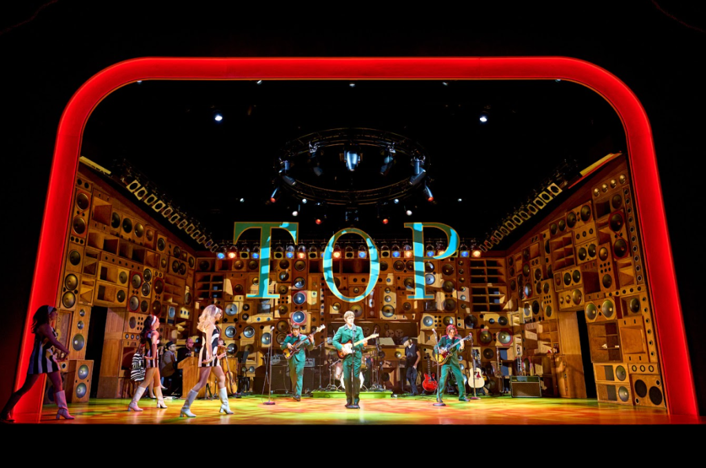 It is this class divide that often drives much of the plot, Ray keen to stick to his roots whilst facing bombardment from the press, who in particular begin asking difficult questions about his wife (Lisa Wright as Rasa), whose Lithuanian parentage raises concerns that she has a communist background. This leads to a disastrous US tour, the stage draped in star spangled banners in such a way that makes the boys from North London look increasingly out of place. Back in the UK, Miriam Buether’s set design is filled with 60s tech, the walls adorned with all types of vintage wooden speakers, and the back glass wall offering a peek into a recording studio, which is used in a couple of the numbers to feature backing dancers and vocalists.