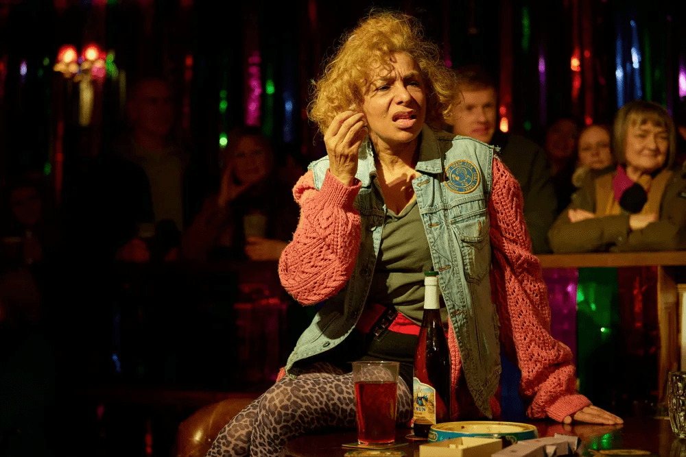 From the moment the audience enters the Royal Exchange, they are entirely absorbed into the world of ‘Road’. The entire building has been cleverly redesigned to allow audience members to explore Jim Cartwright’s 1980s-set play at their own pace, before taking their seats in the auditorium. A trip to the pub sees Shobna Gulati’s Brenda and Dean Michael Gregory’s Barry playing darts. Further down the corridor, you can find Eddie’s dad (Dana Haqjoo) watching the boxing on TV. Lucy Beaumont’s Louise is doing her makeup, preparing for a night out, whilst my theatre companion and I found ourselves pursued by Lucie Shorthouse’s Chantal, asking us to lend her a lighter or buy her a shandy. It is chaotic, in-your-face and completely unlike any theatre I’ve ever experienced before. And it all happens before the show has even begun.