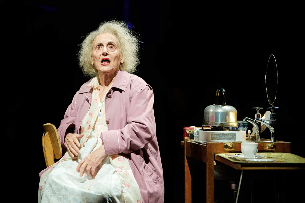 Perhaps one of the most moving moments of the night comes courtesy of Joseph, who plays elderly lady Molly, a woman who lives on her own and quietly sings to herself whilst putting on makeup – “a bit of red, a bit more red”. It is funny but also incredibly sad – a woman desperately trying to cling to her past, someone who has always depended on her good looks now left with very little else. Elsewhere, Tom Courtenay appears via TV screens to deliver Jerry’s monologue, a gentleman lost in his memories, recalling the nights when he used to go dancing and flirt with girls. They are both part of a forgotten generation, and it is a wonderful commentary for what happens to the older population once they stop being useful to society. The amount of people across the country who have simply been forgotten is staggering. The play may be set in the 80s, but the themes are just as relevant today.