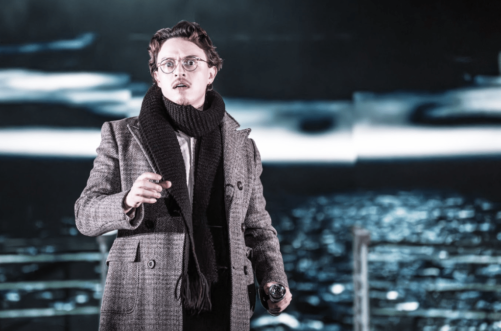 Last year’s Rupert Goold-directed “Hamlet” (which I previously reviewed here) is given a makeover for a UK tour by Sophie Drake, who retains much of the original, but is forced to make necessary changes due to the limitations of a touring set. I spoke previously about my issues with the setting of this Shakespearean tragedy, which replaces the hallowed halls of Elsinore Castle with the upper decks of the Titanic, and it is safe to say that the setting works no better here. The play is beset with too many problems that it must then try to solve, too many barriers that result in shoe-horned explanations or non-sensical scene transitions. In Stratford-upon-Avon, what the play lost in clarity it made up for in spectacle, but the tour even loses that to some degree – the platform on which the action takes place remains static, and the surrounding water is recreated thanks to some clever (if slightly nauseating) video design courtesy of Akhila Krishnan, rather than using an actual swimming pool. Drake finds clever ways of incorporating these elements into a touring production, but it leaves everything feeling slightly lacking.