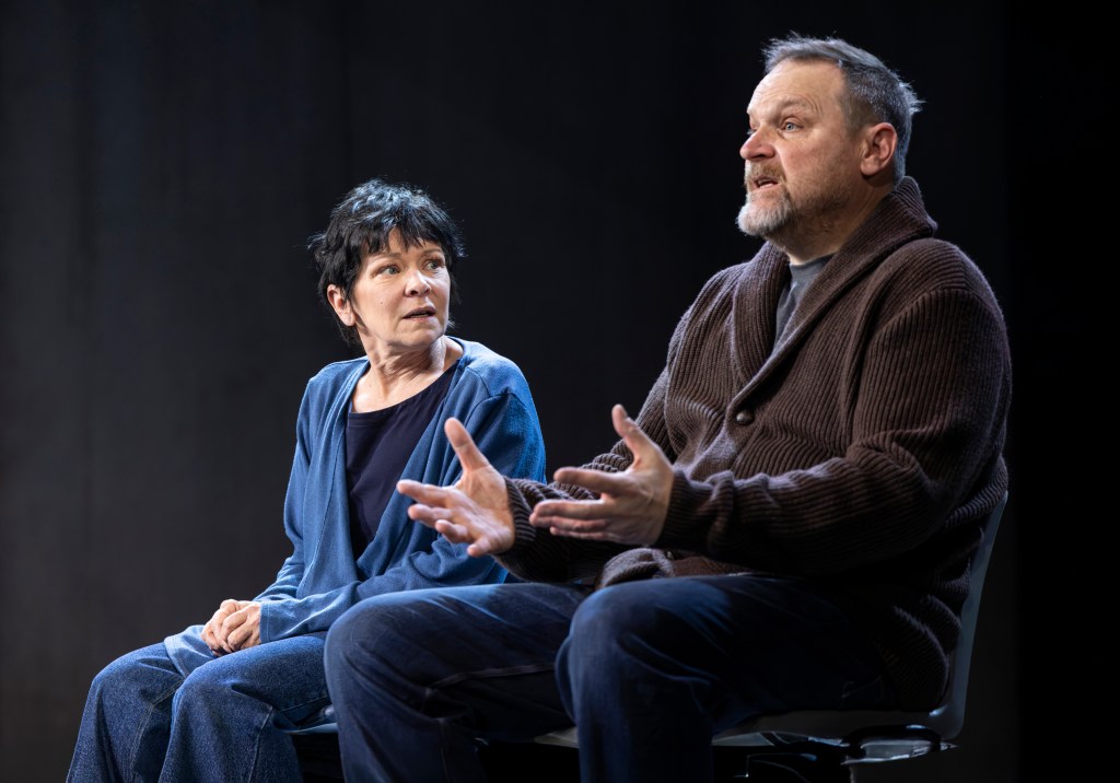 At times, the script takes on a clinical edge, offering additional exposition to help explain very clearly what is happening. This is particularly important in explaining the restorative justice scheme, as Grace Hodgett Young’s Nicola describes to the audience how the first meeting between Jacob, Joan and David is meticulously planned to ensure that all parties are comfortable and all possible outcomes are prepared for. The scene where the three first meet is long and intense, no background noise or sound necessary, the lighting stark and white and static throughout. It is Young who draws the eyes the most here, despite her character being removed from the emotional stakes. She is the outsider looking in, holding her breath when things become tense, willing both sides to stick to the strict rules she has put in place. She is our window into this scene, and Young’s performance throughout is engaging and captivating – there is nothing harder for an actor than being present throughout a scene where you have relatively few words, and very little action.