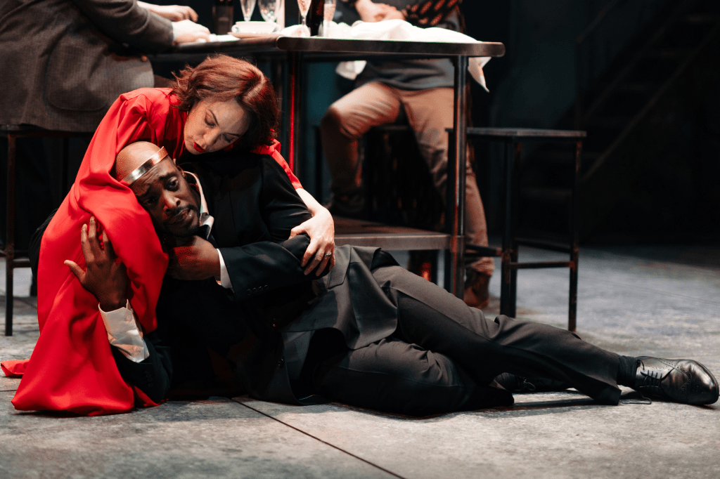 In the title role, Oliver Alvin-Wilson gives a masterful performance, a Macbeth that teeters between anger and passion, yet bubbles with grief beneath the surface. In Alvin-Wilson’s hands, Shakespeare’s soliloquies are performed clearly and precisely, building in speed and volume until Alvin-Wilson expertly slows the pace, helping to distinguish between moments of indecision and sudden realisation. For a production ostensibly aimed at GCSE students, it is this clarity that makes this production worth your time, helping to bring Shakespeare’s words to life and make sense of dialogue that can feel convoluted when reading from a text.
