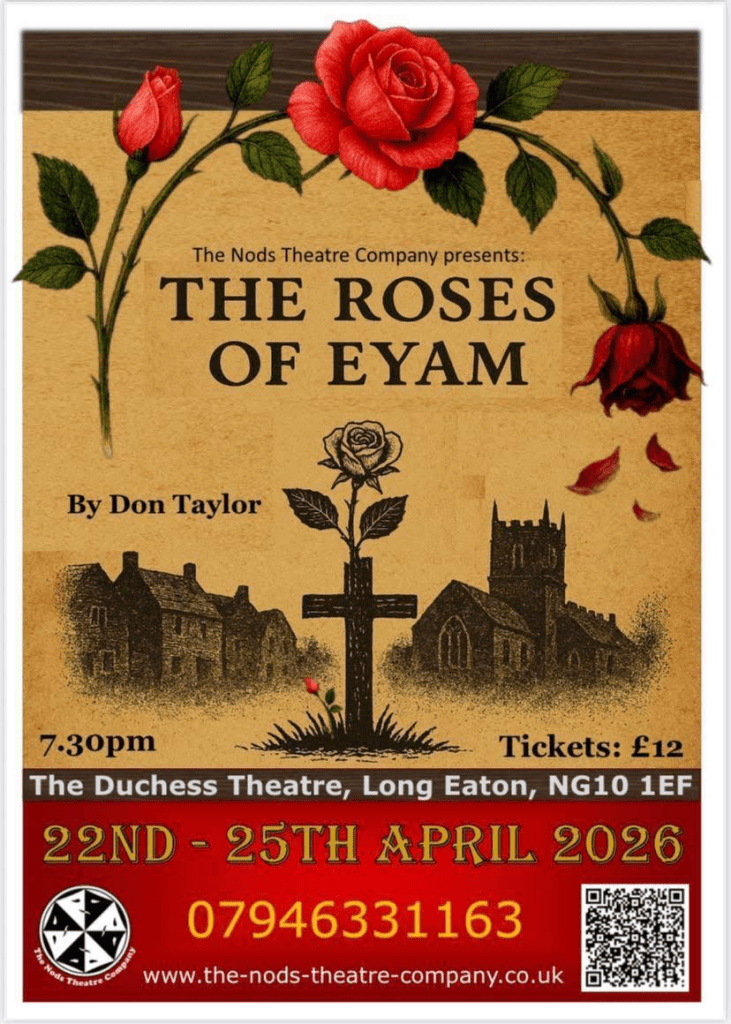 Telling the true story of Eyam, a village hit by plague during the 1600s, one of the greatest strengths of NODS’ “The Roses of Eyam” is the time taken to set up a sense of community, introducing a myriad of endearing characters that makes the audience keenly feel the losses when tragedy hits. Written by Don Taylor and directed by Elaine Sellors, the production explores the impact of plague on a huge variety of different people as the body count grows higher and the village decides to cut themselves off from everyone else in order to protect the people of Derbyshire. It is, ultimately, a tale of courage and compassion, yet when plague has been eradicated, the sense of victory is somewhat subdued due to the devastating death toll.