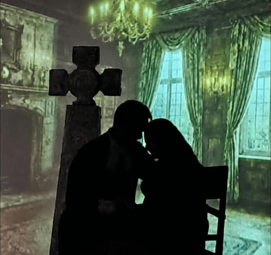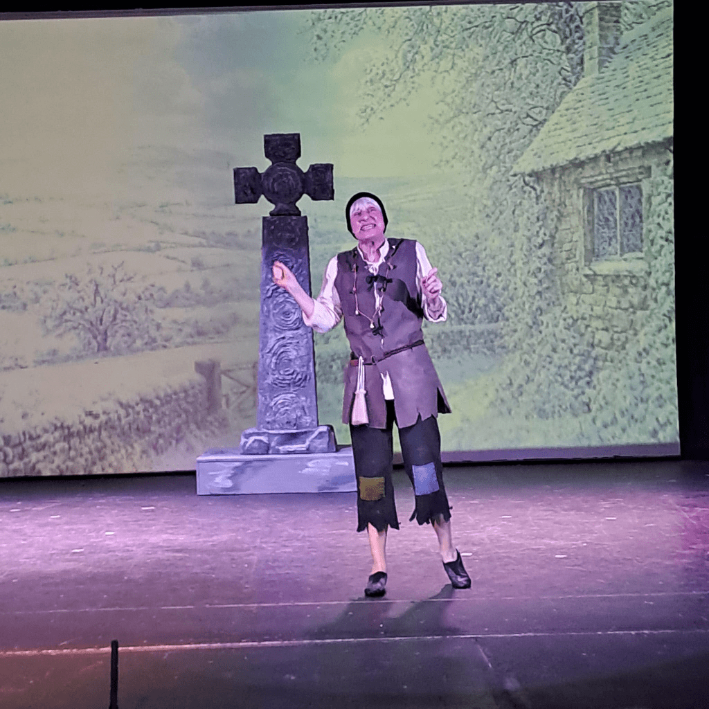 At almost three hours, this is a long play, yet the story is well-paced throughout. Made up of lots of small scenes, each scene runs neatly into the next, with no need for black-outs or dead stage time, actors coming on swiftly to pick up the action and move the story on. The production makes use of very little set, instead relying on projections courtesy of Philip Rutland and Ray Harrison, which give a clear indication as to where the scene is taking place, whilst a faithful replica of Eyam’s Celtic Cross is ever-present at the back of the stage, a constant reminder of Eyam’s long history of worship.
