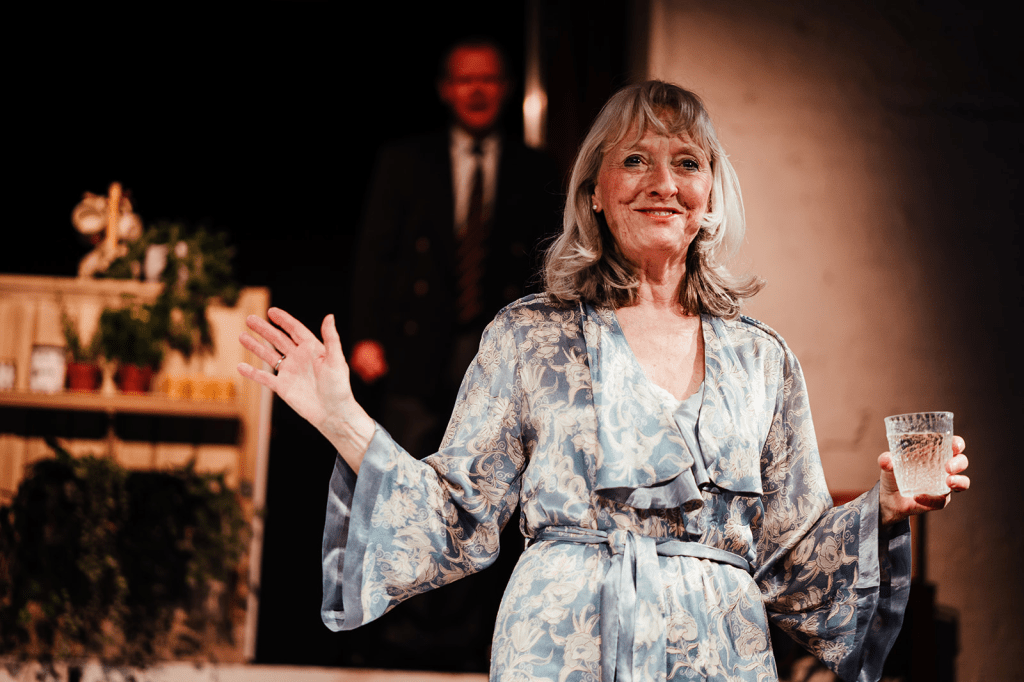 Yet Moss performs Robin with a comedic slant, his sudden outbursts and sarcastic comments often drawing laughs from the audience, making this an enjoyable watch despite the uncomfortable underlying arguments. This is a production that mocks Robin’s political views and is all the better for it – under Trev Clarke’s direction, this show never once suggests that what Robin is arguing for is acceptable. It helps, of course, that Hamilton’s Diana is incredibly likeable, her facial expressions helping to capture her frustration and increasingly short tolerance for her husband’s views. This is perfectly encapsulated in Robin’s reaction when he discovers Diana has not prepared any lunch for their visiting friends, to which Diana retorts “I thought it was your turn”. Robin’s argument is left with nowhere to go except to confess “It hasn’t been my turn for 30 years”.